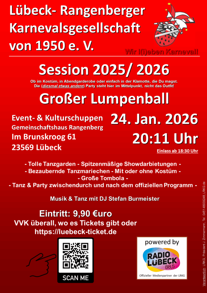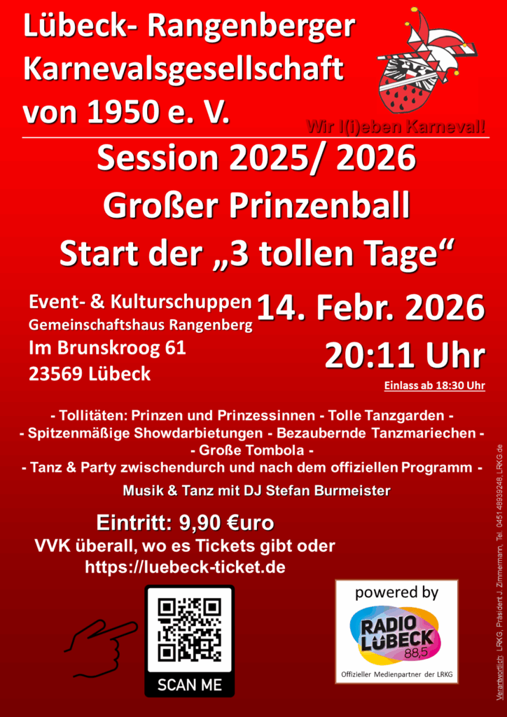 Unsere weiteren eigenen Veranstaltungen in Lübeck- Rangenberg – vom ausgelassenen Lumpenball über den rauschenden Prinzenball bis hin zum bunten großen Kinderkarneval – haben wieder einmal bewiesen, wie lebendig und vielfältig unser Verein ist. Doch auch die Besuche bei unseren befreundeten Karnevalsvereinen haben uns vor Augen geführt, wie stark der traditionelle Karneval Menschen verbindet. Ein herzliches Dankeschön an alle Gesellschaften, die uns so warmherzig empfangen haben!