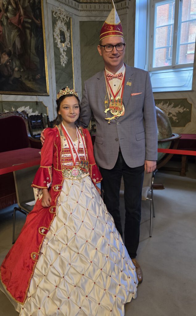 Der Bürgermeister, Jan Lindenau, hat dafür dann auch extra seine beste Stube im Rathaus geöffnet, den historischen Audienzsaal. Groß war die Überraschung auch diesmal, als dann zuerst eine bezaubernde Jugendprinzessin feierlich die Tür in den Saal durchschritt. Nur kurze Zeit später aber kamen dann gleich drei Erwachsene hinterher. Ein Dreigestirn. Eine absolute Premiere im Lübecker Komitee.