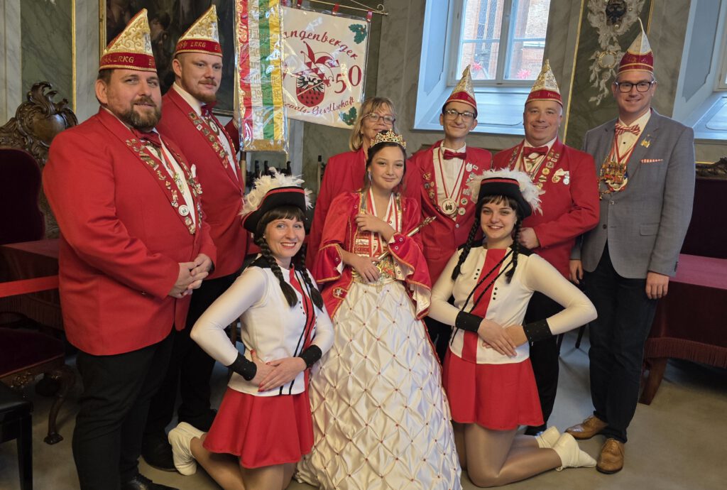 KLK- Jugendprinzessin Mia I., hier gemeinsam mit den Gratulanten der Lübeck- Rangenberger Karnevalsgesellschaft von 1950 e.V. und dem Bürgermeister der Hansestadt, Jan Lindenau.